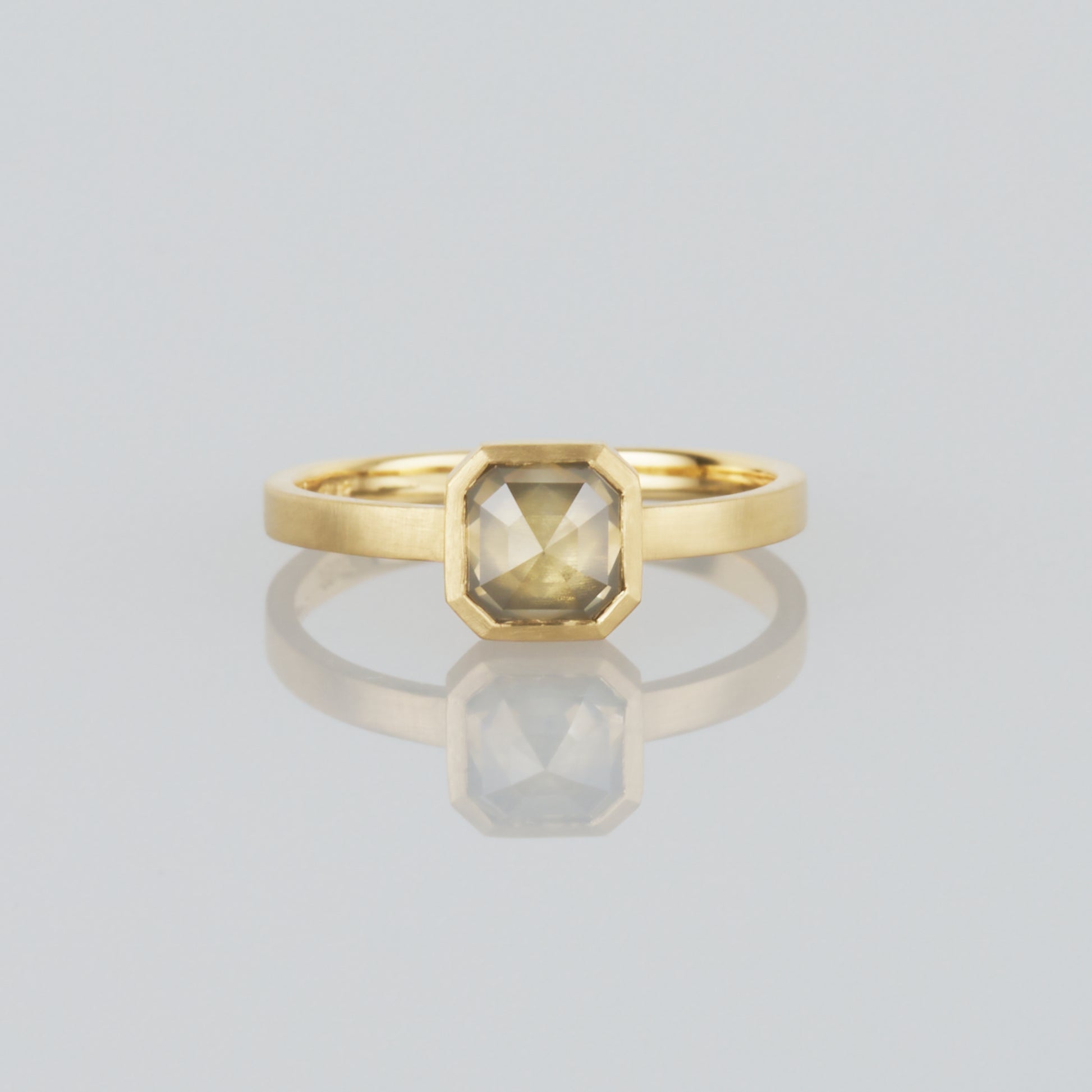 直線的なカットと淡いブラウンを帯びた色にしっとりとしたムードが漂うMogul Cut Diamond Ring。すっきりとした仕立てによって、個性的な石の魅力が最大限に生かされています。SATOMIの目でひとつひとつ丁寧に選び抜かれた貴重なダイヤ